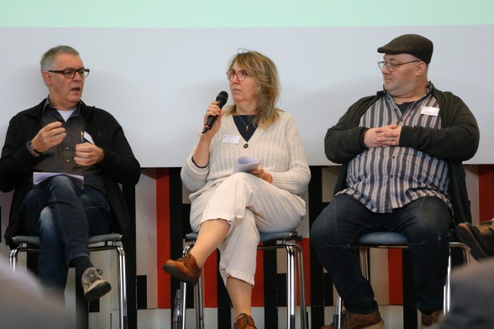Fokus Elternschaft. Die Podiumsdiskussion »Soziale Teilhabe über Elternschaft« wurde durch Kurzbeiträge eingeleitet. Diese beleuchteten die spezifischen Schwierigkeiten psychisch beeinträchtigter Eltern, darunter die Problematik des Sorgerechtsverlusts (Silvia Krumm), die Perspektive einer Betroffenen, die zur Genesungsbegleiterin wurde (Julia Exter), sowie das Fehlen von adäquater Unterstützung durch Kostenträger (Dr. Marion Michel).
